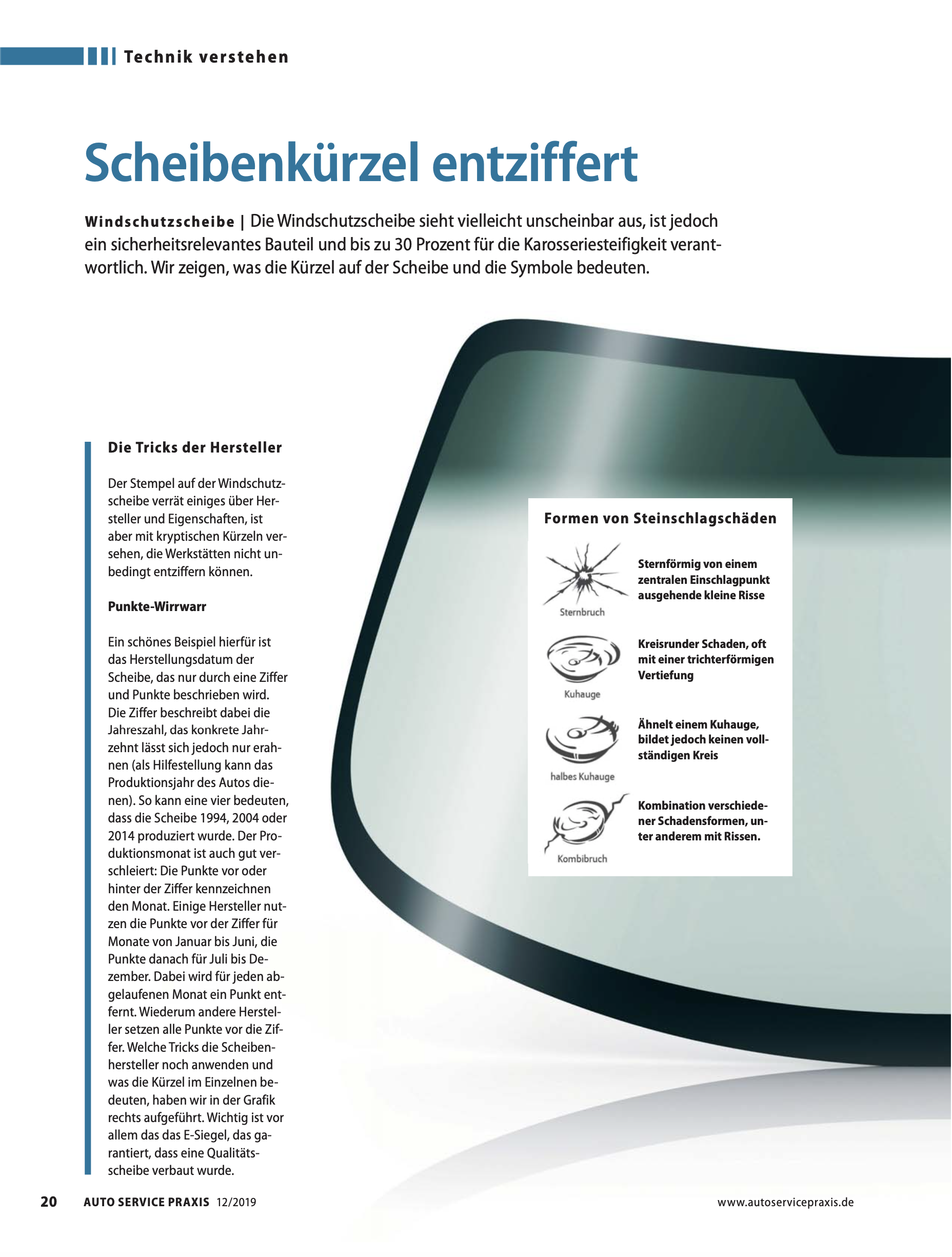 Frontscheiben moderner Fahrzeuge sind mit Verbundglasscheiben bestückt. Diese werden aus Sicherheitsgründen – nach DIN EN ISO 12543-2 – aus zwei Glasscheiben hergestellt, in dessen Mitte eine Spezialfolie integriert ist. Die Folie verhindert, dass im Falle eines Bruchs Glassplitter in das Fahrzeuginnere gelangen.